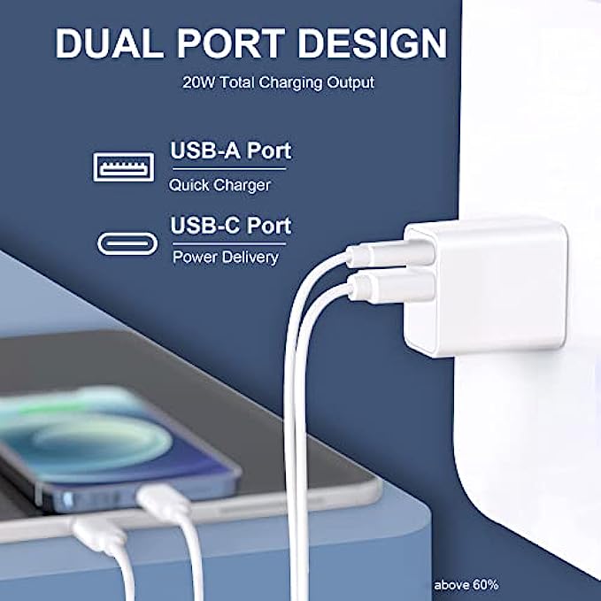 [Apple MFi Certified] iPhone Fast Charger,2Pack 20W Dual Port PD3.0 USB-C + USB-A Power Delivery Wall Charger Block Plug for iPhone 13/13 Pro Max/12 Mini/12 Pro Max/11/XS/XR/X/8,iPad,AirPods Pro Max
