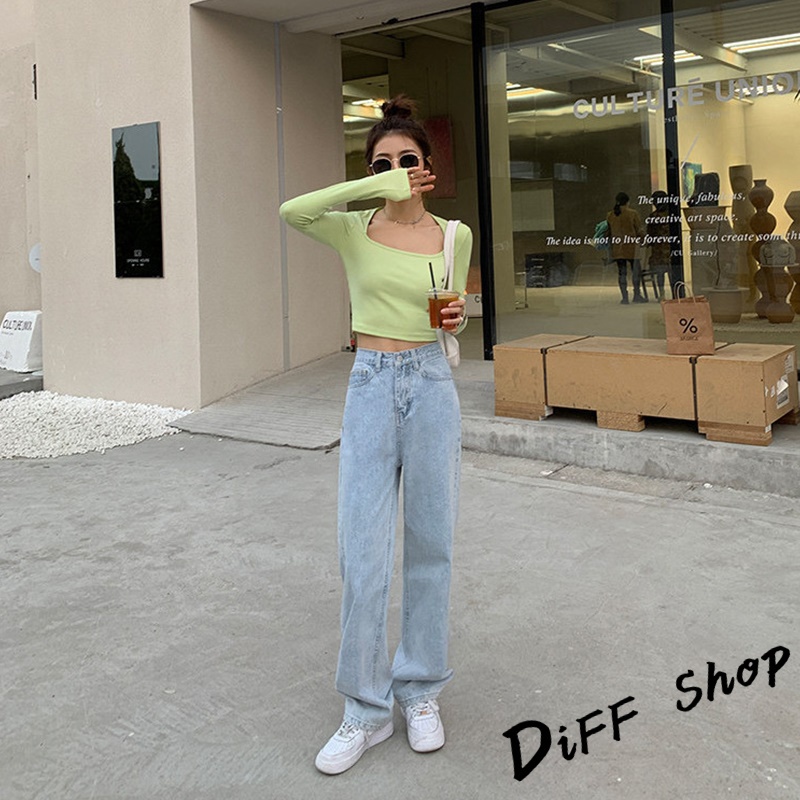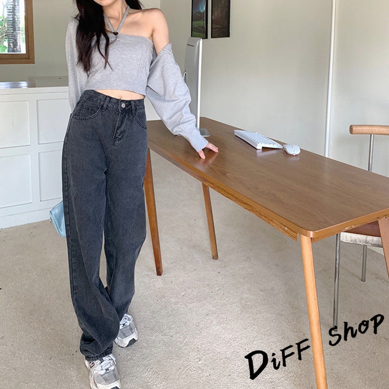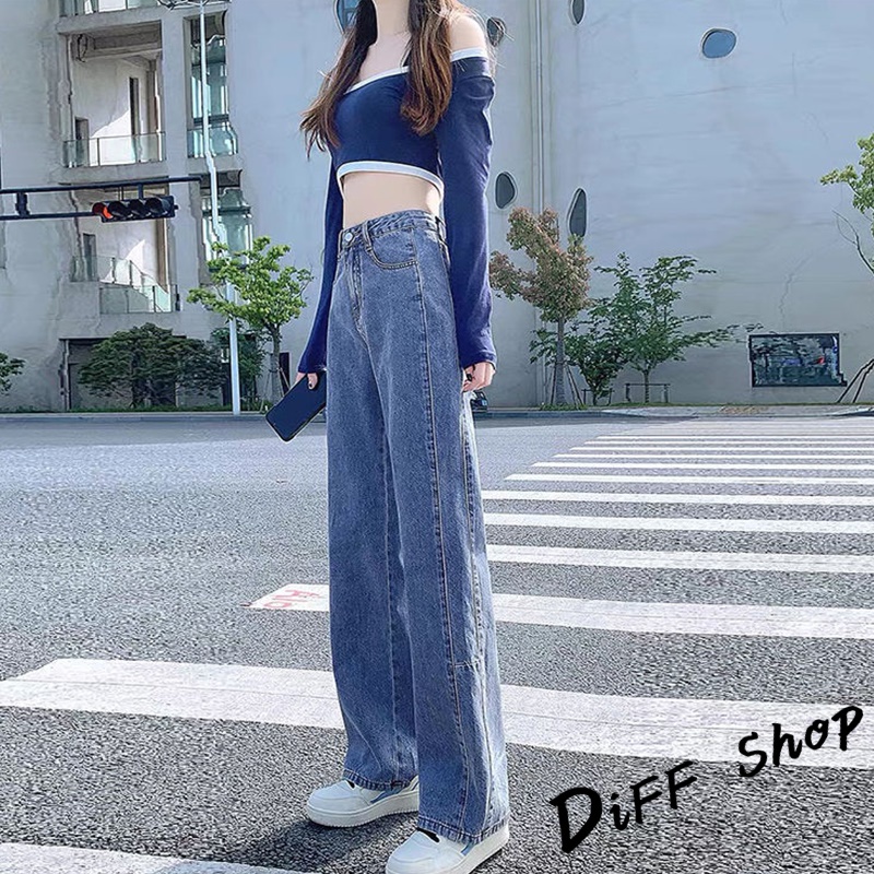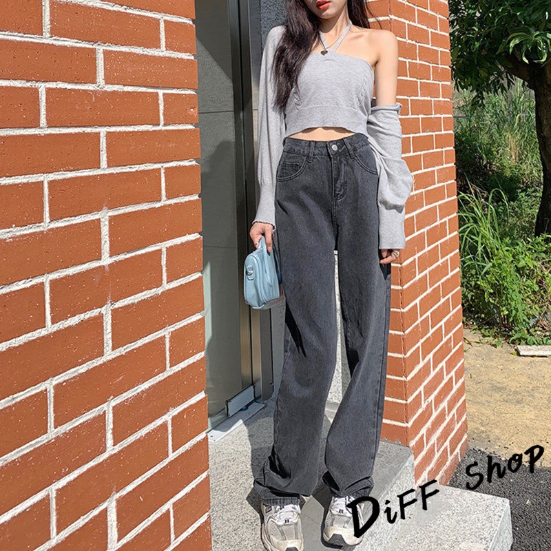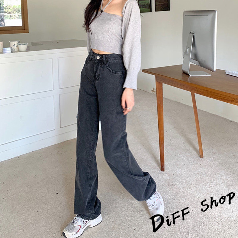 【DIFF】韓版復古直筒高腰牛仔寬褲 拖地褲 落地褲 寬褲 褲子 長褲 休閒褲 女裝 牛仔褲【P97】