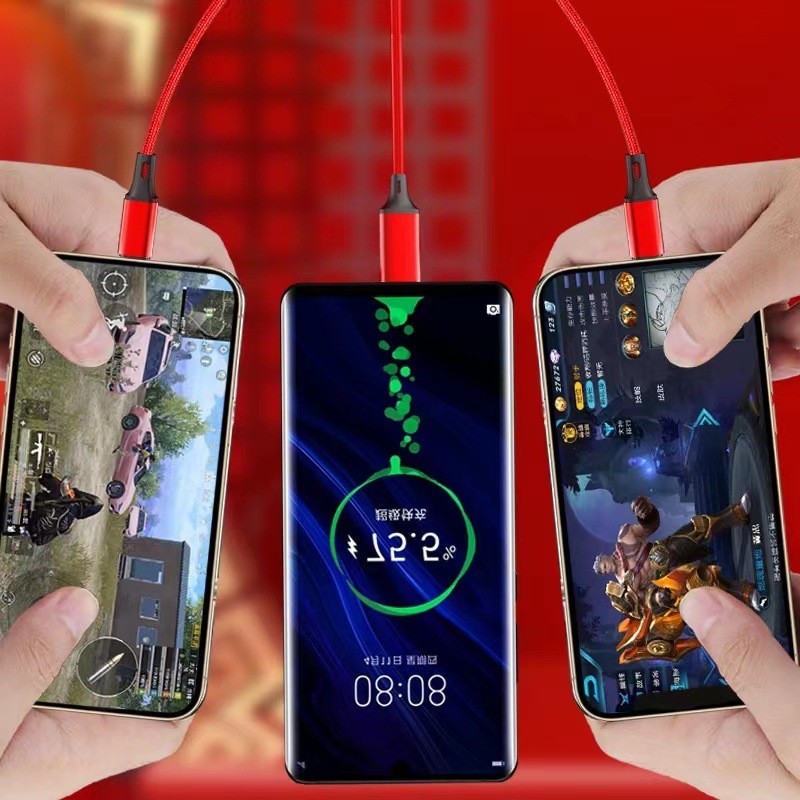 1.2m Weaving One To Three Data Cables Usb Port Multiple 3In1 Micro USB Type C Charger Cable for Ios/Android/Type-C USB Charging Cable