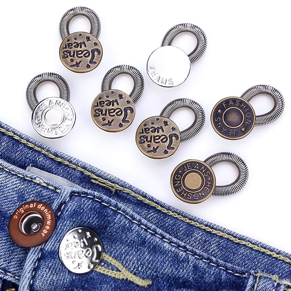 1PC Vintage Adjustable Metal Button Extender Waist Extenders Buttons Waistband Expander Free Sewing Retractable Buckles Metal Spring Skirt Pant Jeans Accessories