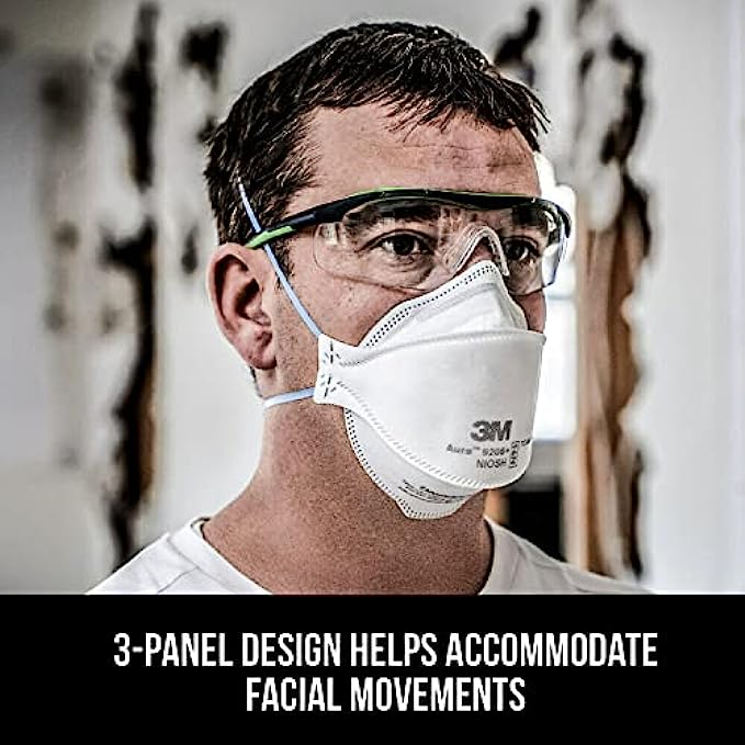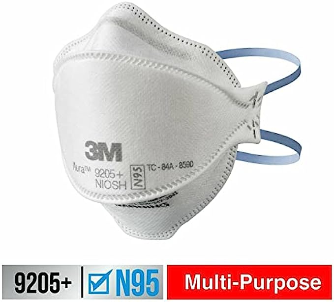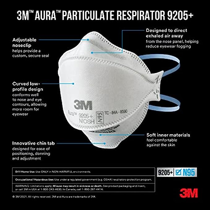3M Aura Particulate Respirator 9205+ N95, Lightweight, Three Panel Designed Respirator Helps Provide Comfortable And Convenient Respiratory Protection, 20-Pack