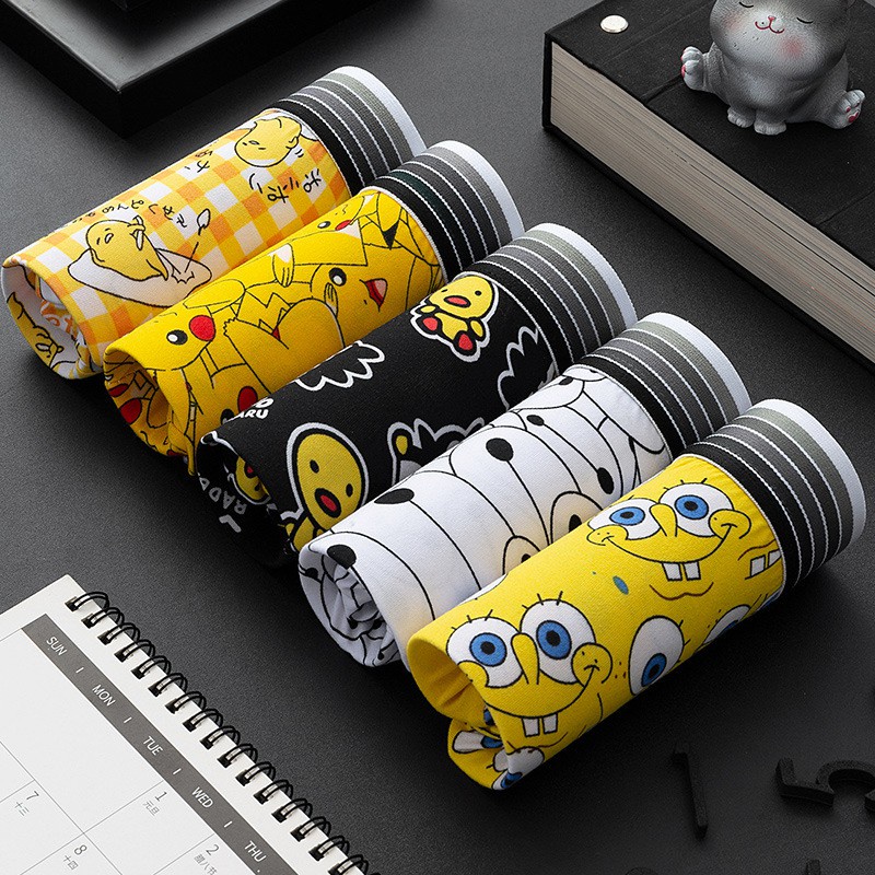 5Pcs/Set Seluar Dalam Lelaki Boxer Men Underwear Men Spender Lelaki Panties Cartoon PantiesGraffiti Plus Size Ice Silk
