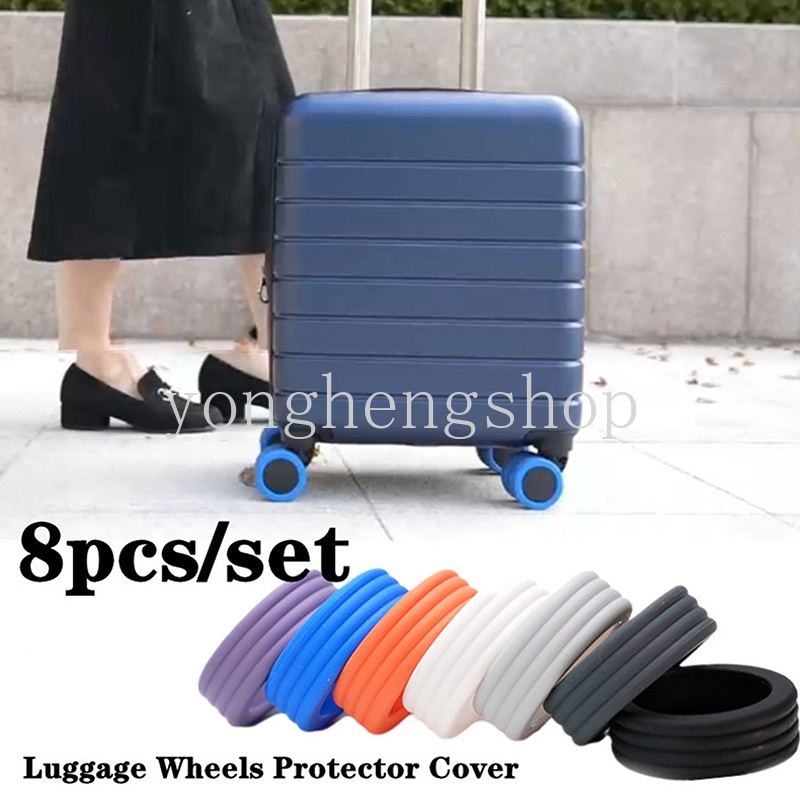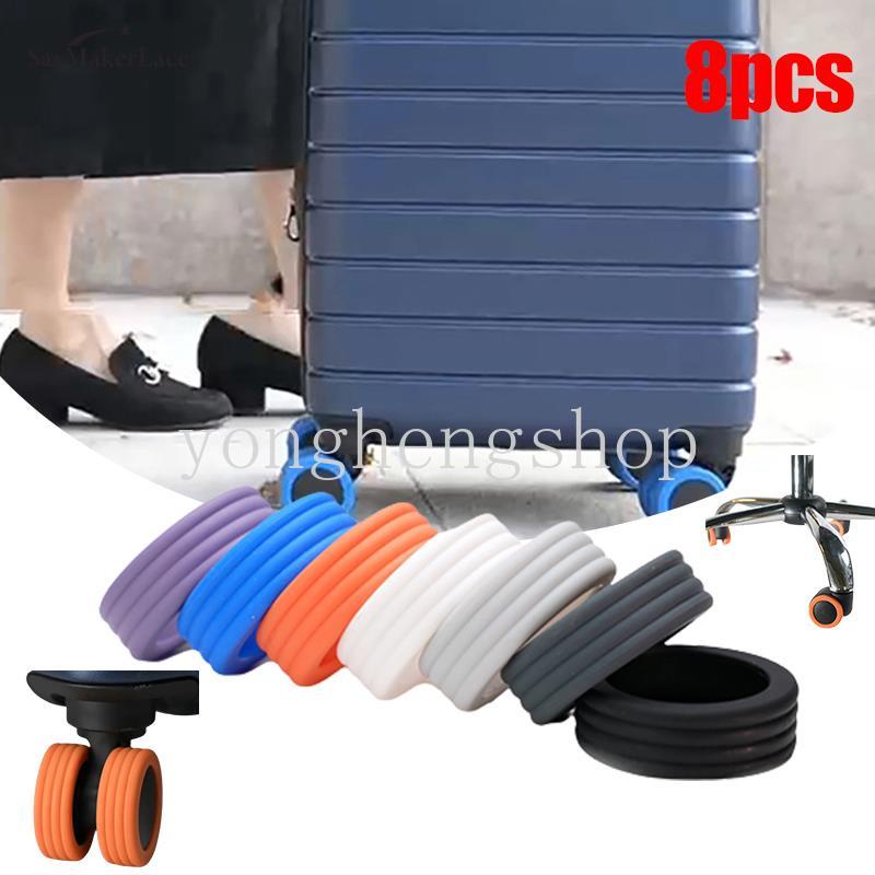 8pcs/set Anti-wear Luggage Wheels Protector Cover Elastic Silicone Trolley Box Caster Shoes Reduce Noise Chairs Suitcase Wheels Covers Travel Accessories