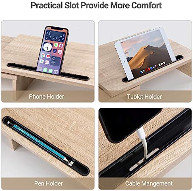 • CARE YOUR BODY: As a ergonomic monitor riser stand, it could raise your computer monitor, tablet or laptop to an and keep screen at eye level and help you keeping a better posture, preventing stress cause by the long time work