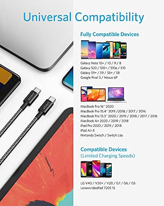 • What You Get: New Nylon USB-C to USB-C 100W Cable (10 ft), hook and loop cable tie, welcome guide, lifetime warranty, and friendly customer service.