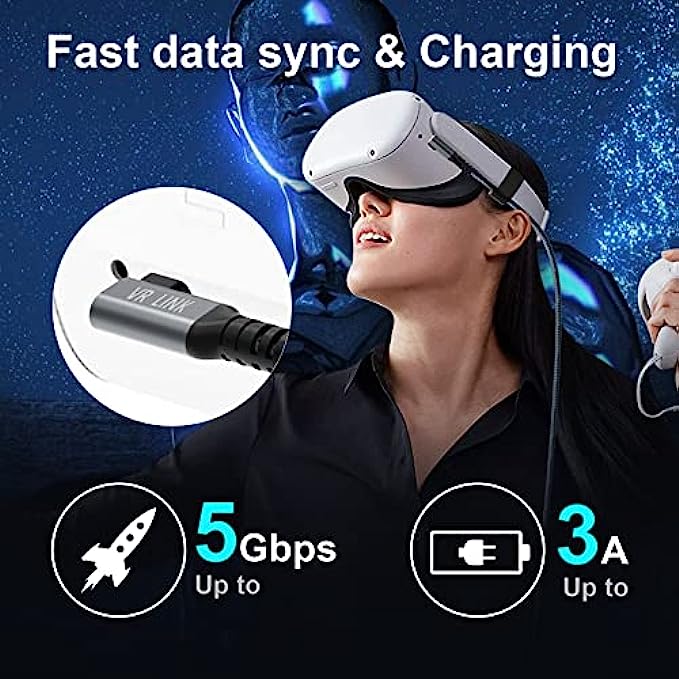 【High Speed & Fast Charging】With data transfer speeds of up to 5Gbps, the oculus quest 2 charging cable allows for fast connection to Oculus Link programs for lag-free use of VR headset, supports 3A fast charging and provides a smooth gaming experience.