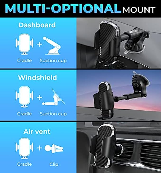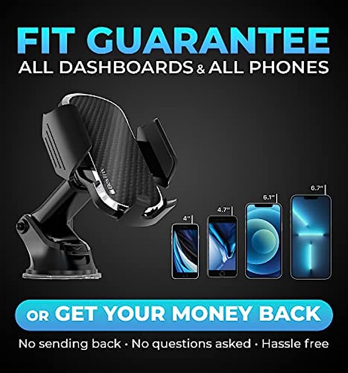 BesTrix Phone Mount for Car – Car Phone Holder Mount, Dashboard, Windshield, and Air Vent– for All Cars, Installs in Minutes – Holds All Phones up to 6.7”– Phone Holder for Car Dashboard