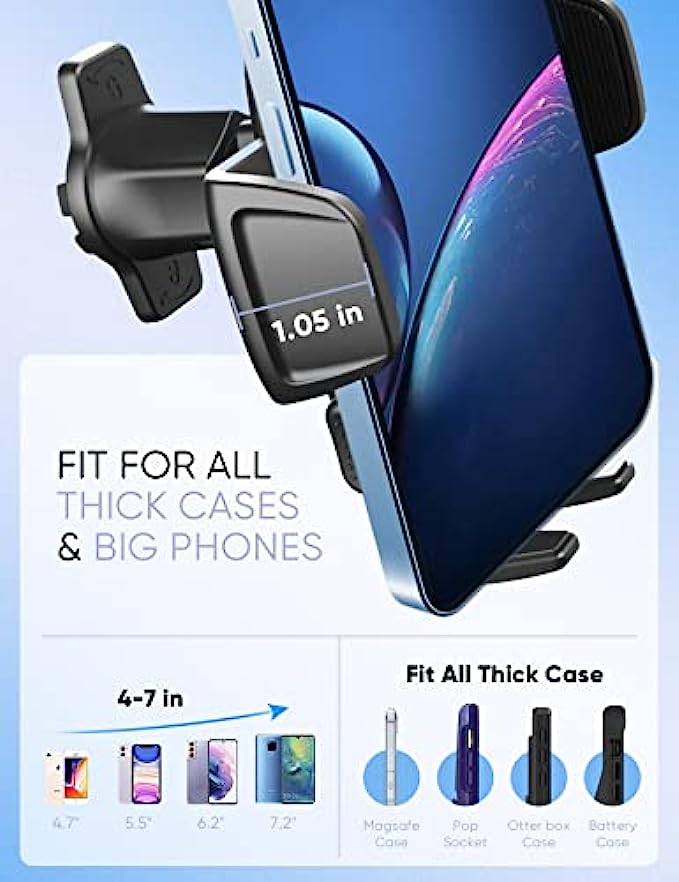• ?Great Compatibility & Support Thick Case - The upgraded clamp arm can be perfectly adapted to mobile phones with thick cases. The adjustable foot design is compatible with all 4.0"-7.0" smart phones. Fit for iPhone 13/ 13 Pro/ 13 Pro Max/ 12/ 12 Pro/ 12 Pro Max/ SE/ 9/ 11 Pro Max/ 11 Pro/ 11/ XS MAX/ XS/ XR/ X/ 8/ 8 Plus/ 7/ 6. Also compatible with Samsung Galaxy Note 10/ Note 10+/ S20/ S20 Plus/ S10/ S10e/ S10+/ S9/ LG Google etc