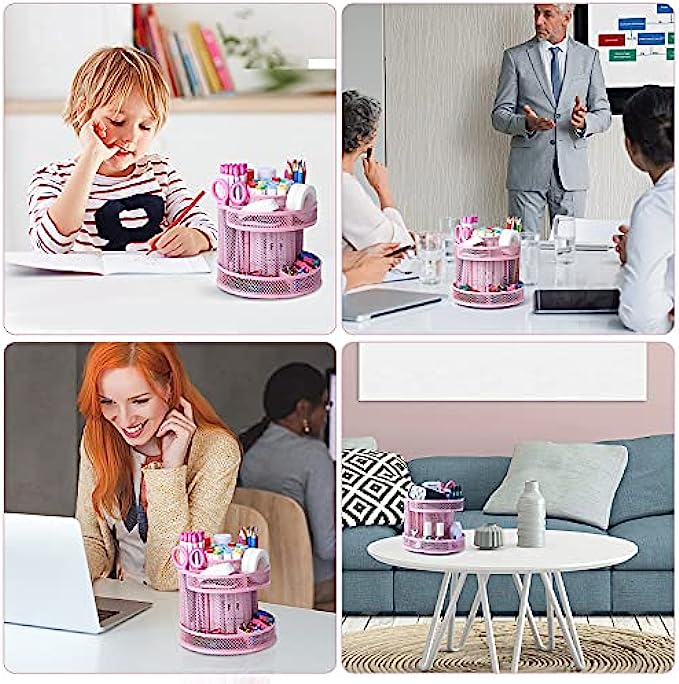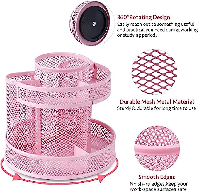【360 DEGREE REVOLVING DESIGN】 This desktop organizer can be turned up to 360 degree rotation to the left and right .You can easily reach out to something useful and practical you need during working or studying.The product can be bilaterally and smoothly rotated, just turn as you please.