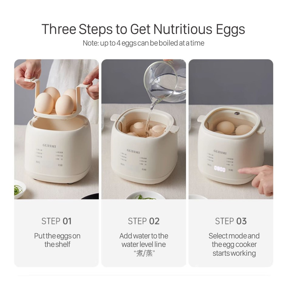 GUESMI Multifunctional Egg Cook (4 Trays) Egg Boiler Egg Steamer Make Egg Custard and Yogurt LG-901