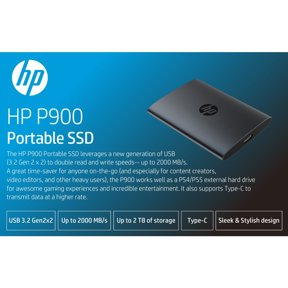 HP Portable External SSD P900 512GB/1TB/2TB Super Slim USB 3.2 Type-C New Launch