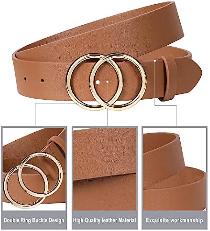 JASGOOD 3 Pack Women Leather Belt for Jeans Pants, Ladies Waist Belts with Double O-Ring Buckle