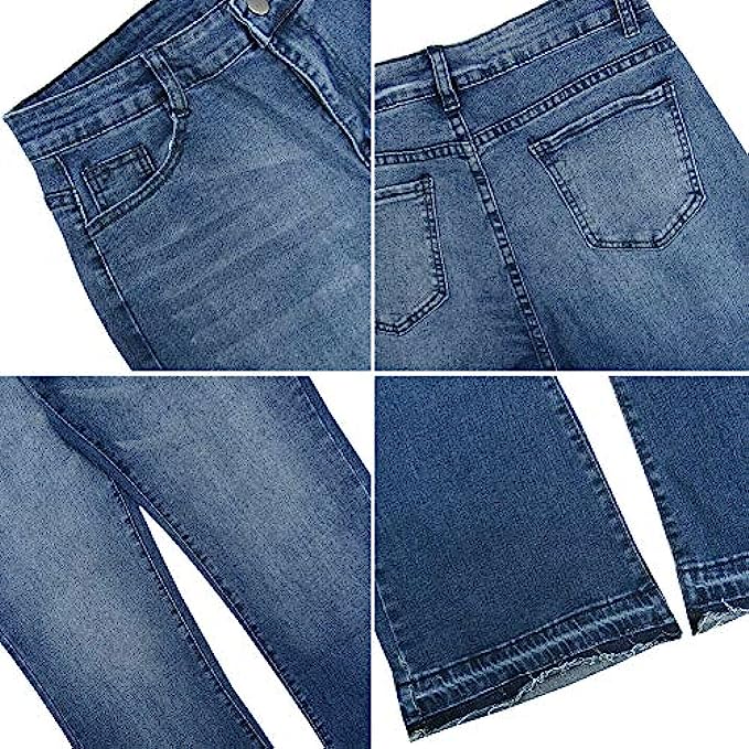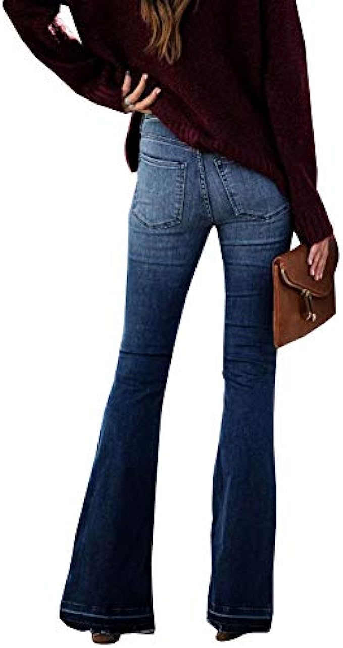 LONGBIDA Skinny Bell Bottom Jeans High Waisted Stretch Straight Slim Fit Denim Pants