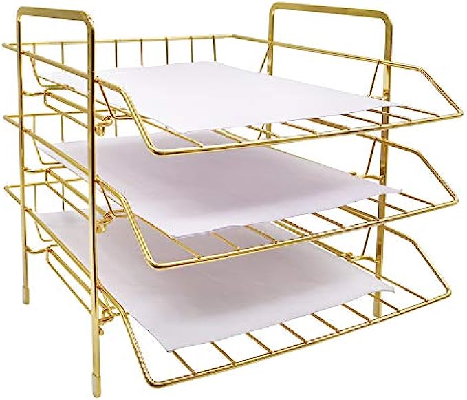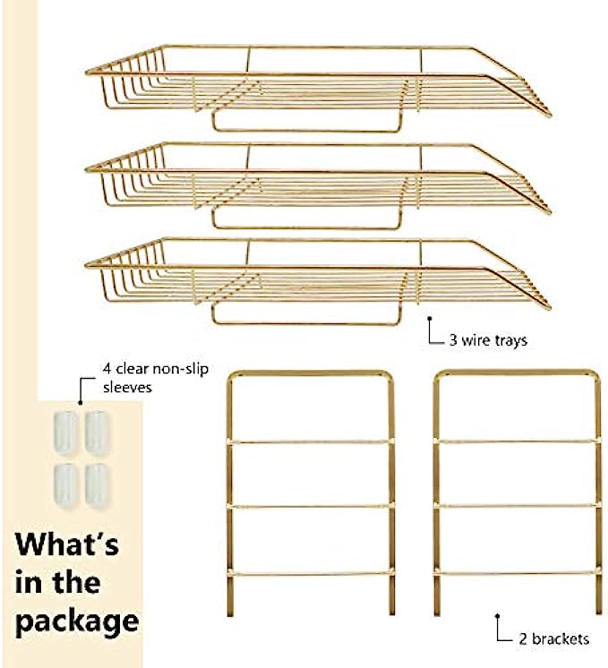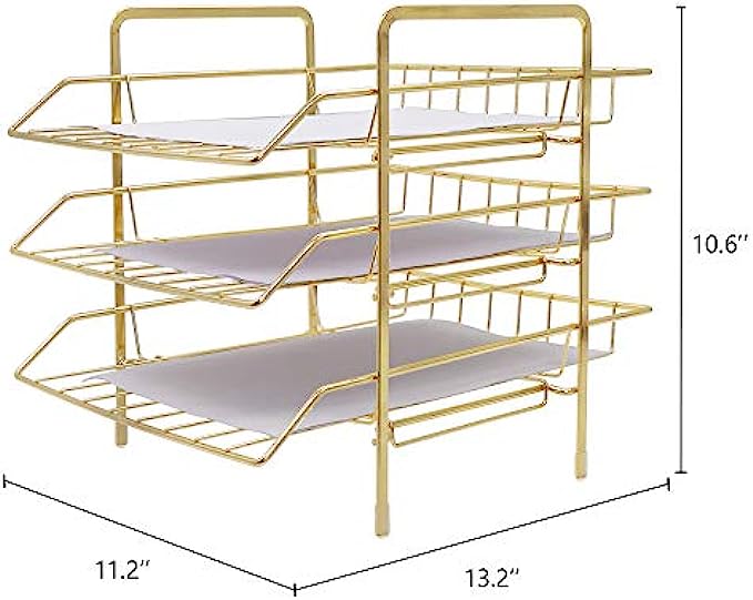 • ✔️【SIZE】13'' x 10.8'' x 10.6''. This gold paper tray utilize vertically-stored space, maximize use your desktop workspace. Keep your office and learning environment tidy and convenient.