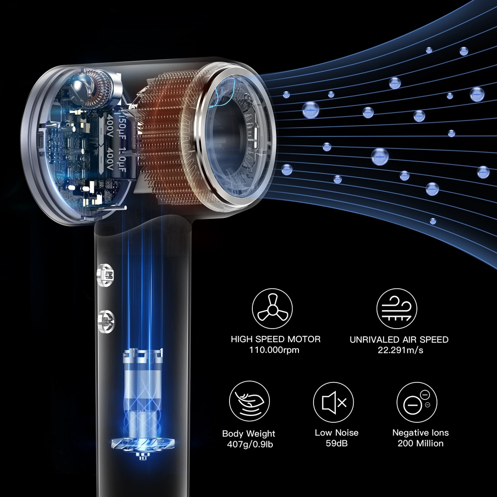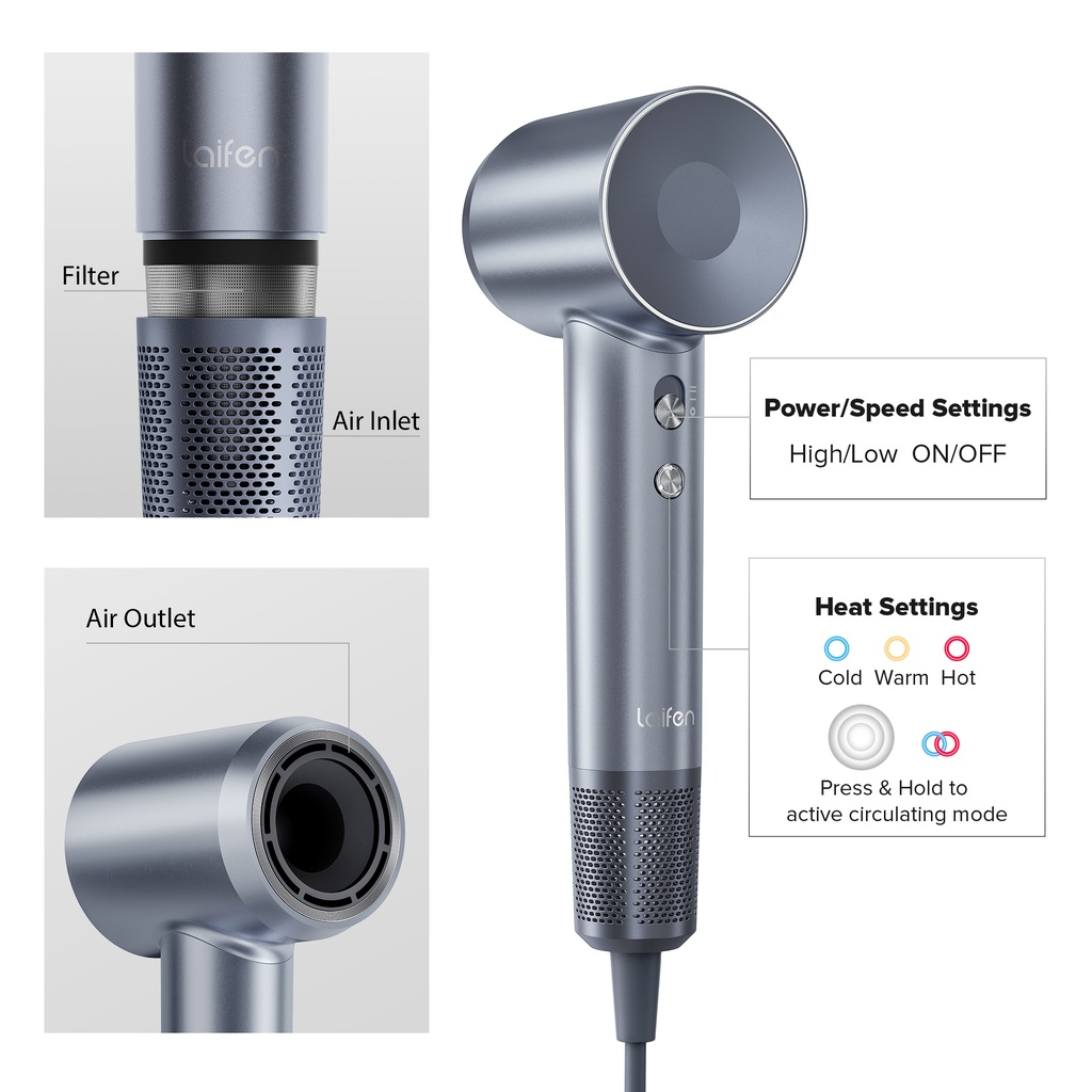 Laifen Hair Dryer Swift Negative lonic Hair Dryer High Speed Fast Drying Thermo-Control Ionic Low Noise