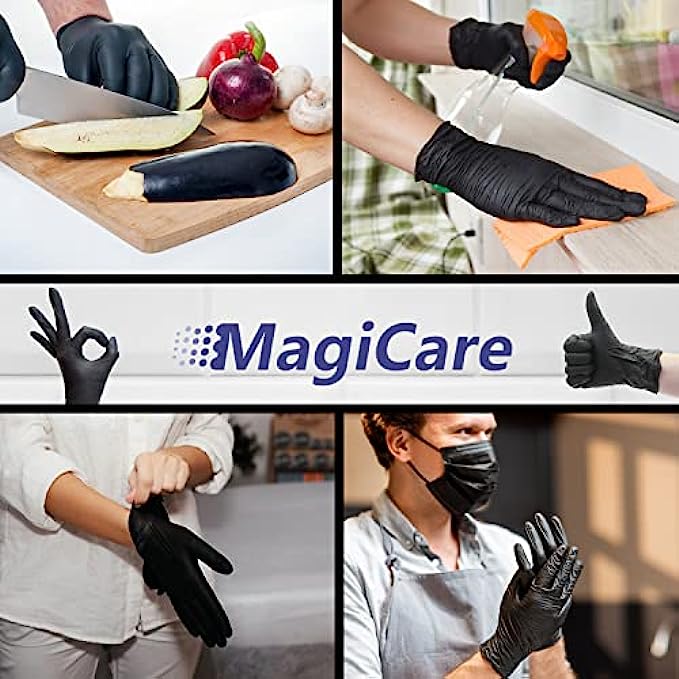 • ?DURABLE MATERIAL: MagiCare's tear-resistant Black Gloves are made from a strong, highly stretchable nitrile material - the best option for tear and puncture resistance.