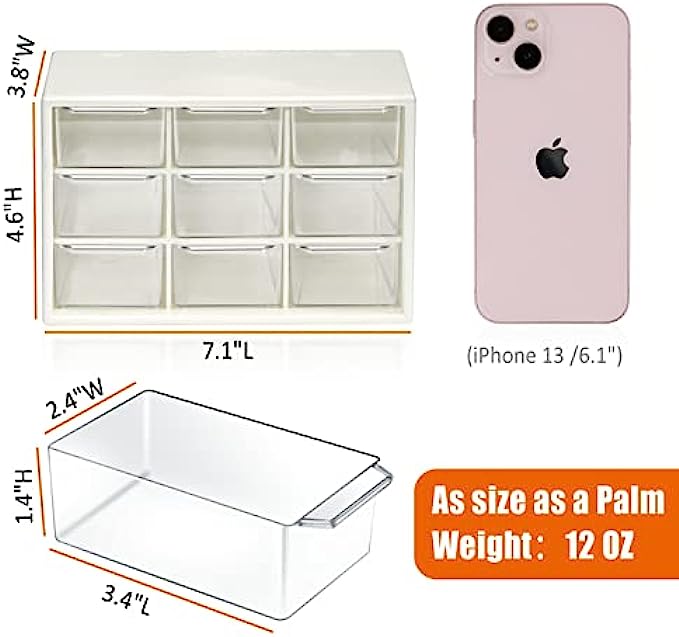 Mini Desk Organizer with Drawers, Office Supplies and Jewelry Storage Case 9 Drawers