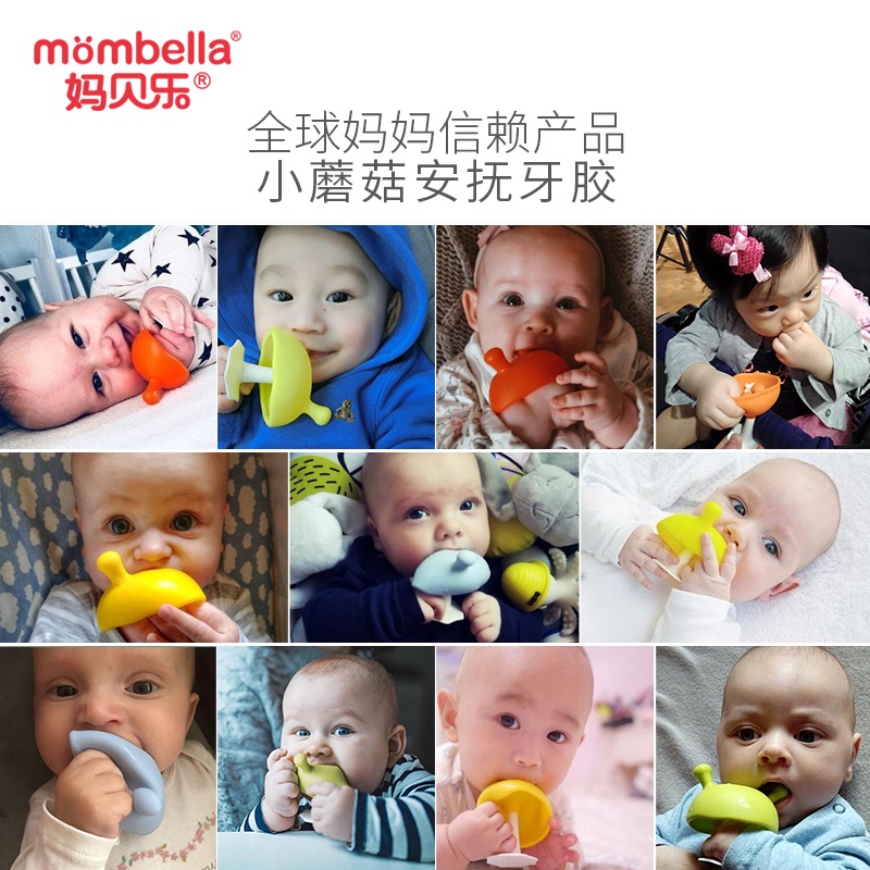Mombella妈贝乐小蘑菇安抚牙胶 婴儿牙胶 宝宝防吃手磨牙硅胶玩具可水煮