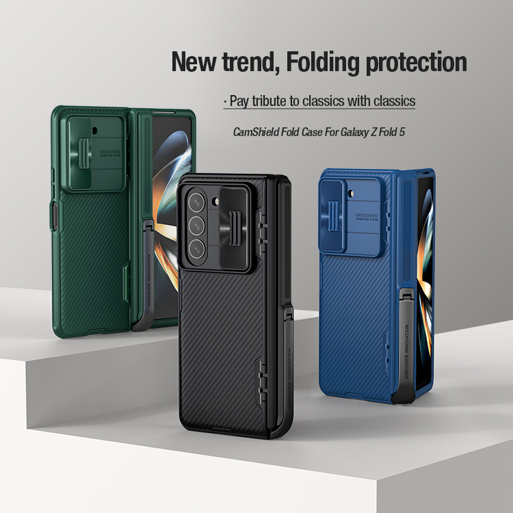 Nillkin Compatible For Samsung Galaxy Z Fold 5 CamShield TPU PC Lens Slide Cover Camera Protect Bracket Phone Case Casing Protective Shell With Pen Pencil Holder