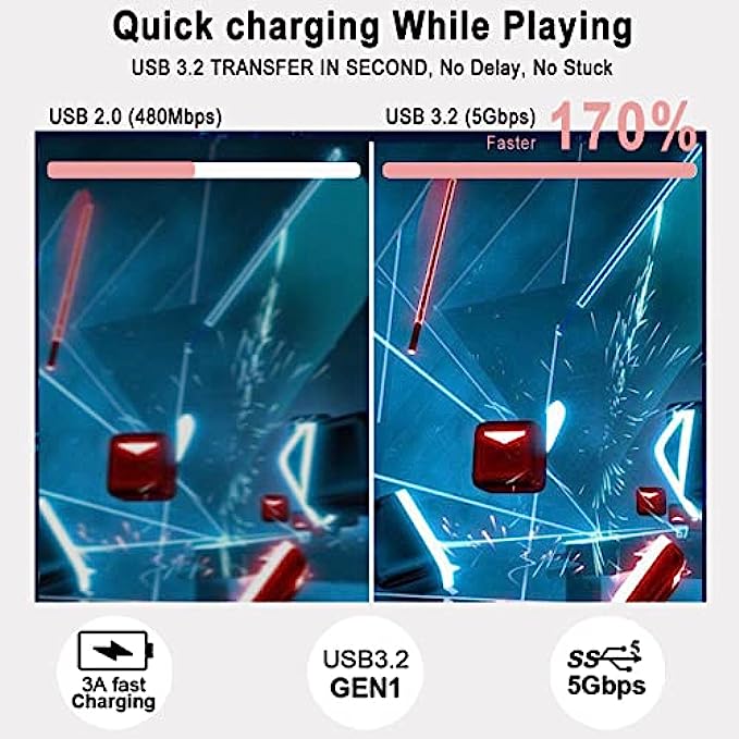 • High-Speed Transfer & Faster Charging: USB 3.2 Gen1 Cable up to 3A charging speed and 5Gbps transfer speed, its transmission is faster and more stable. Your headsets can be charged while playing and you can enjoy the lower delay while playing.