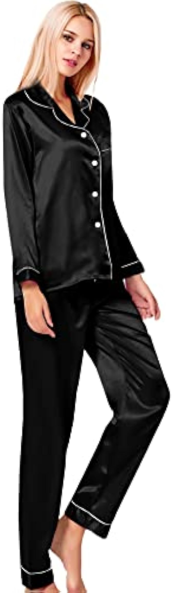 • Occasion: Women's Long Sleeve Silk Satin Pajamas Set, which is suitable for daily wearing and easy to match. Comfortable and suitable for lounging and sleeping, pajama party, girls day, bridal sleepwear, indoor, living room, bedroom, hotel, vacation, travel, and daily sleepwear.