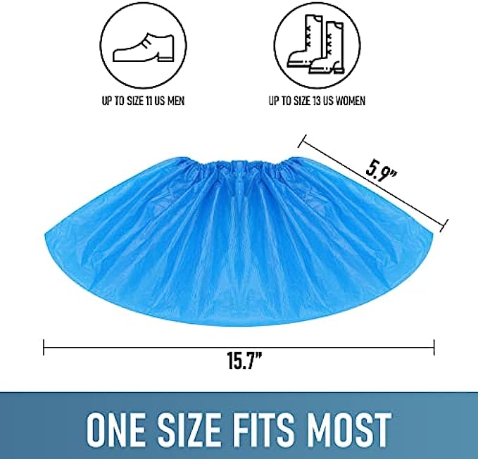 Shoe Covers Disposable Non Slip - 100 Pack (50 Pairs), Premium Waterproof and Recyclable Shoe Booties Covers for Indoors, Fits Up To 11 US Men and 13 US Women Size