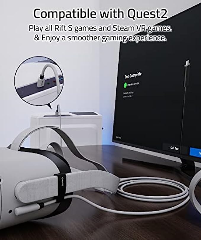 Compatible with Quest2 Accessories: Syntech link cable connects Quest2 to a gaming PC so that you can play all Rift apps and Steam VR games, providing perfect PC VR experience. The color and design of the cable match perfectly with the Quest2 headset.