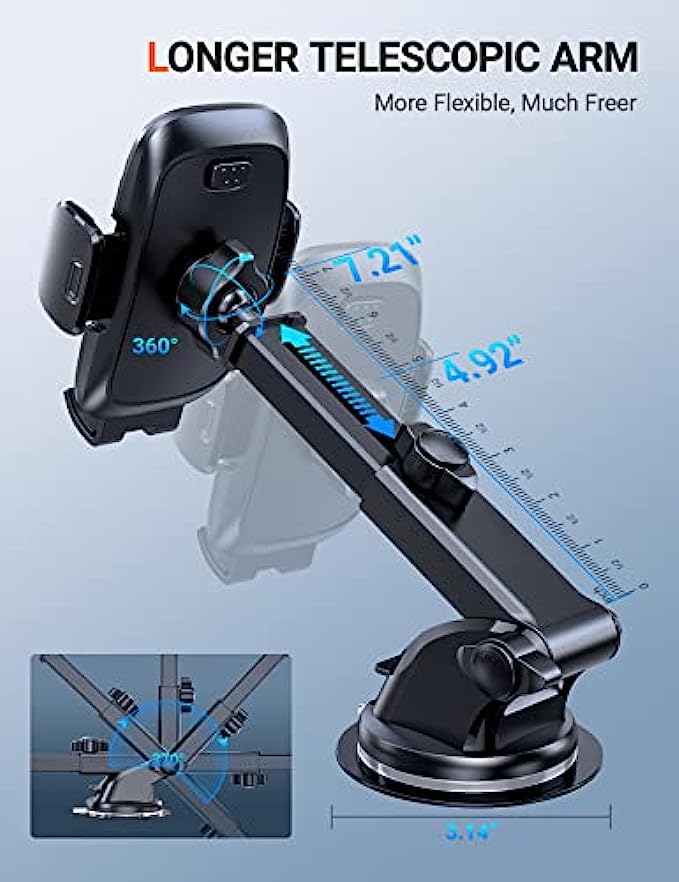 • ▶[MILITARY GRADE STURDINESS TEST]: The 2022 enhanced TORRAS cell phone holder for car passed the military-grade sturdiness test! Absolutely sturdier 20 x than normal ones! The suction cup can withstand the temperature from -20℃(-4°F) to 95℃/(203°F), also be reusable! You can stick it on your car dash or windshield. Also, you can get a sticky pad to protect your car dash. Completely friendly, hands-free and views-adjustable!