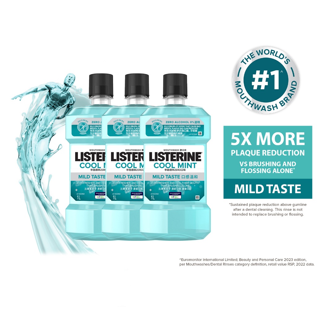 [Bundle of 3] Listerine 1L Mouthwash Value Pack (Cool Mint/Cool Mint Zero/Total Care Zero/Original/Green Tea/Healthy Whi