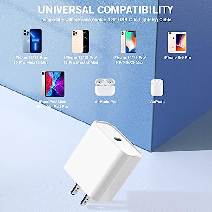 【Package & Warranty】1Pack x 20w PD USB C Wall Charger, 1Pack x 3.3FT PD USB C to Lightning cable, 24-hour service is there for you, welcome to chat if there is anything can help!