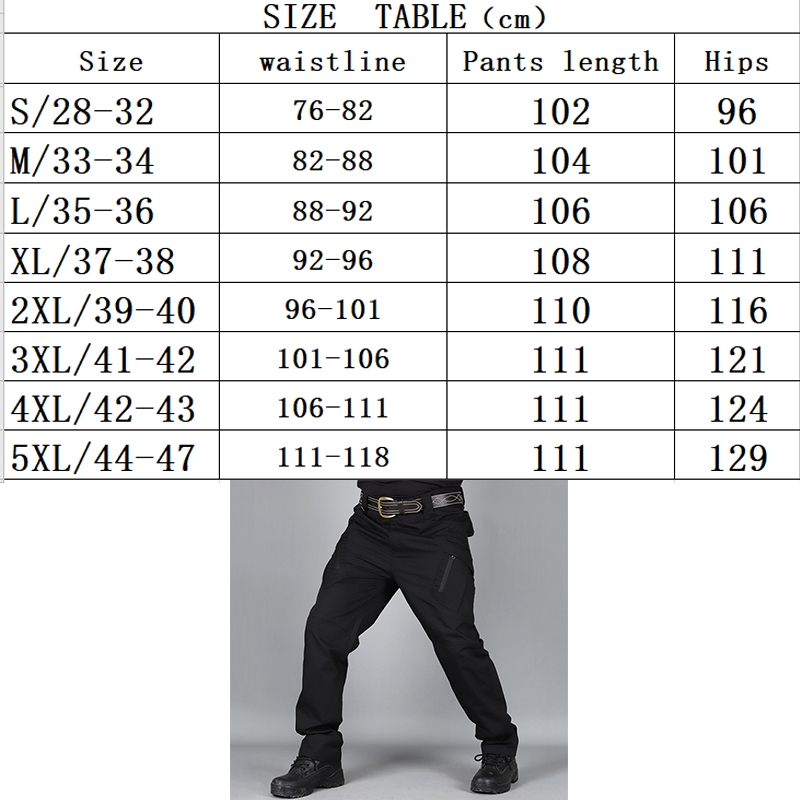IX7-IX9 Men's Cargo Pants Multi Pocket Waterproof Tactical Pants Plus Size