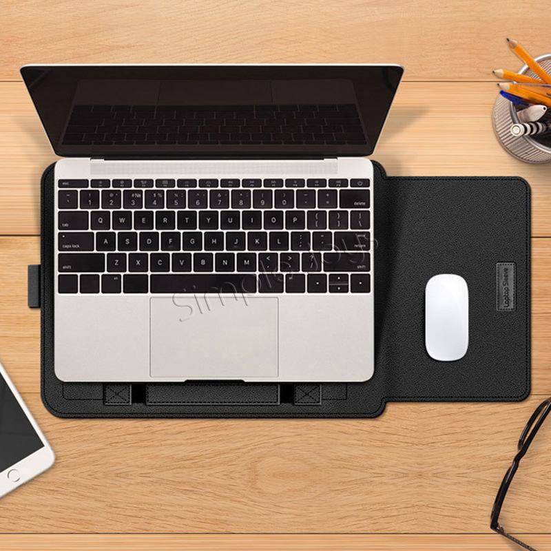 Laptop Cover Sleeve Foldable Stand PU Leather Case with Mouse Pad