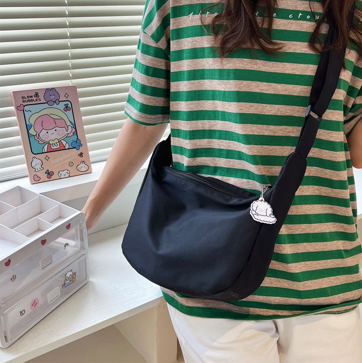 Large-capacity Canvas Shoulder Bag Women 2023 Spring Summer New Style Solid Color Simple Fashion Casual Bag Messenger Bag Trendy