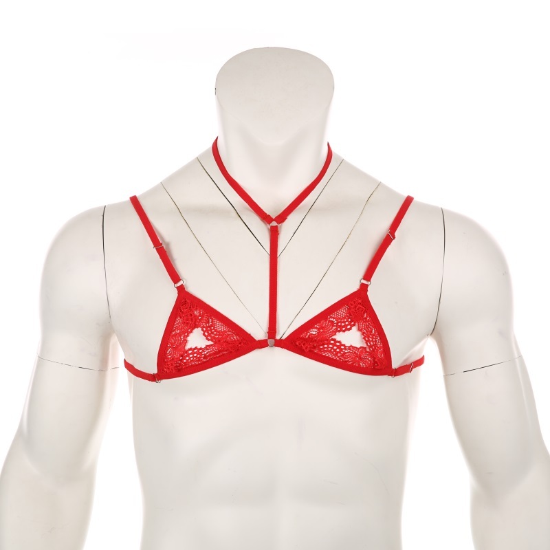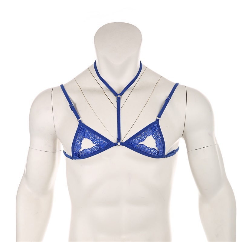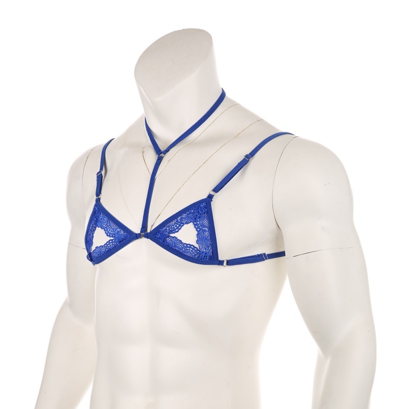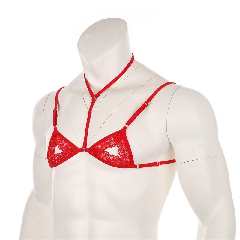 Mens Sexy Lace Transparent Underwear Ultra-Thin No Sponge Bra Top Adjustable No-wire Brasiere Lingerie