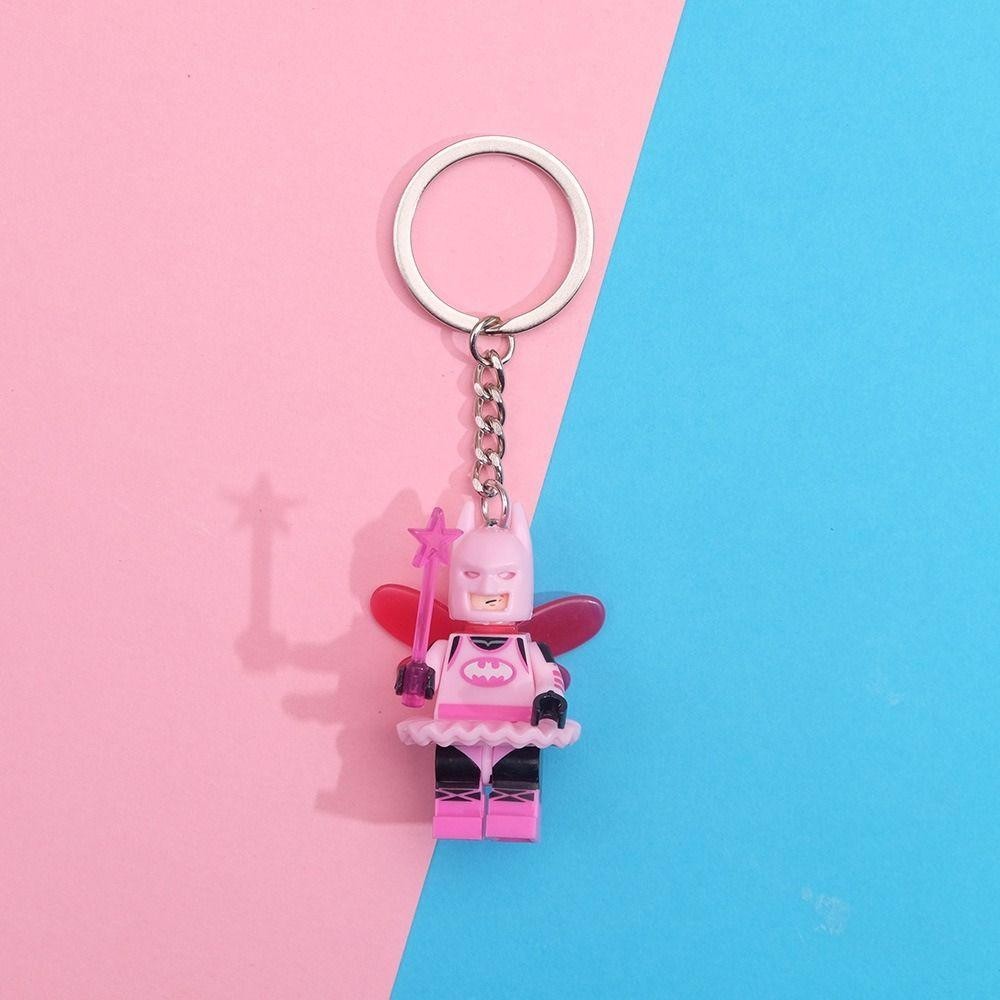 PEONYTWO Keychain, Small Figures Pink Key Ring, Creative Building Blocks Fairy Batman Heroes Key Lanyards