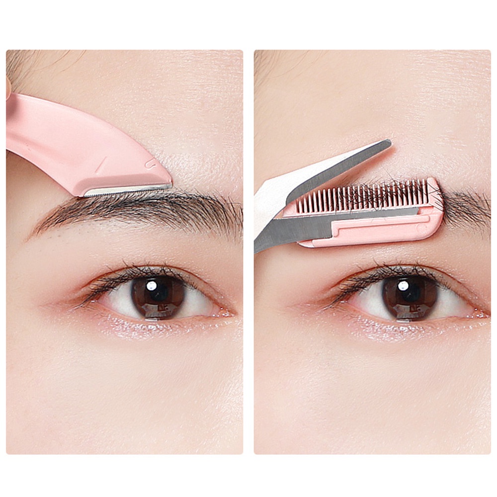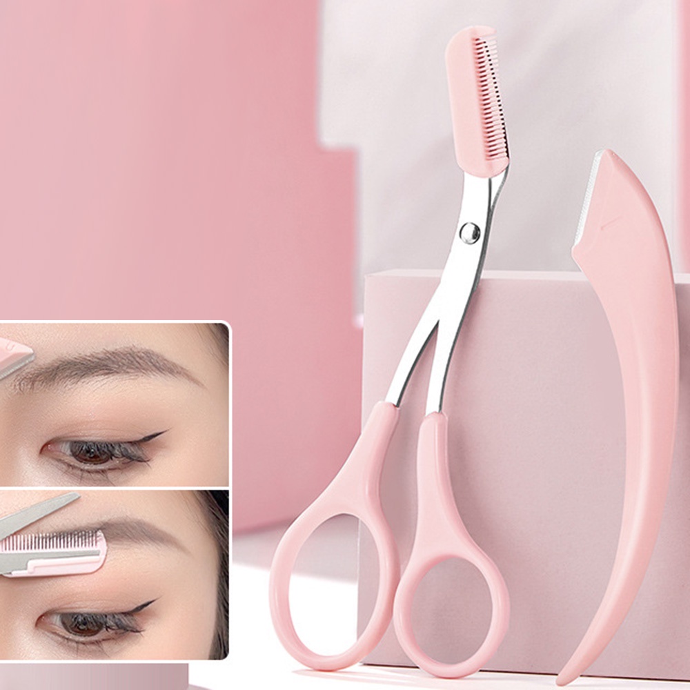 Professional Eyebrow Trimming Kit with Scissors and Razor Blades | Pink and White Grooming Set | Beauty Tools | Onestop Shopping | Ready Stock | 715 Days Delivery