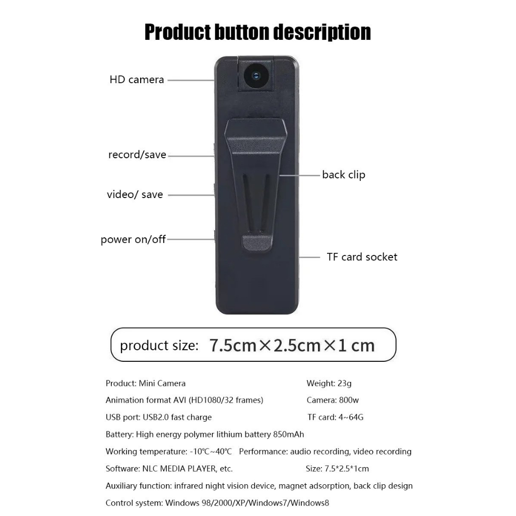 (SG) Mini Camera Body Camera HD 1080P noise reduction camera 180° Rotatable Lens Smart Noise Reduction Recorder Light