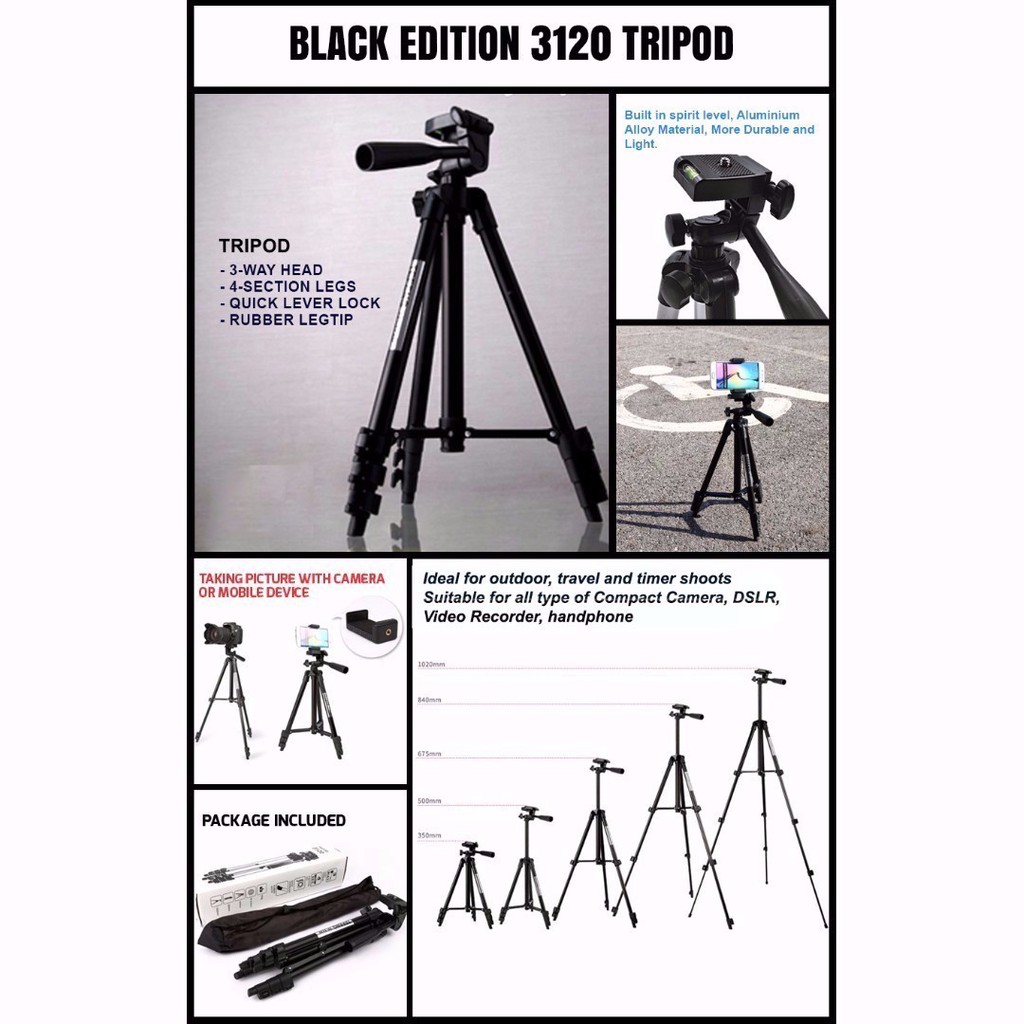 TRIPOD STAND FOR PHONE AND CAMERA BLACK WT-3120