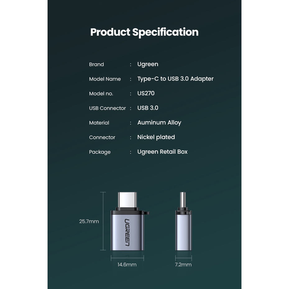 UGREEN USB C to USB 3.0 Adapter USB C OTG Adapter Type C Thunderbolt 3 Male to USB 3.0 A Female Aluminum Converter